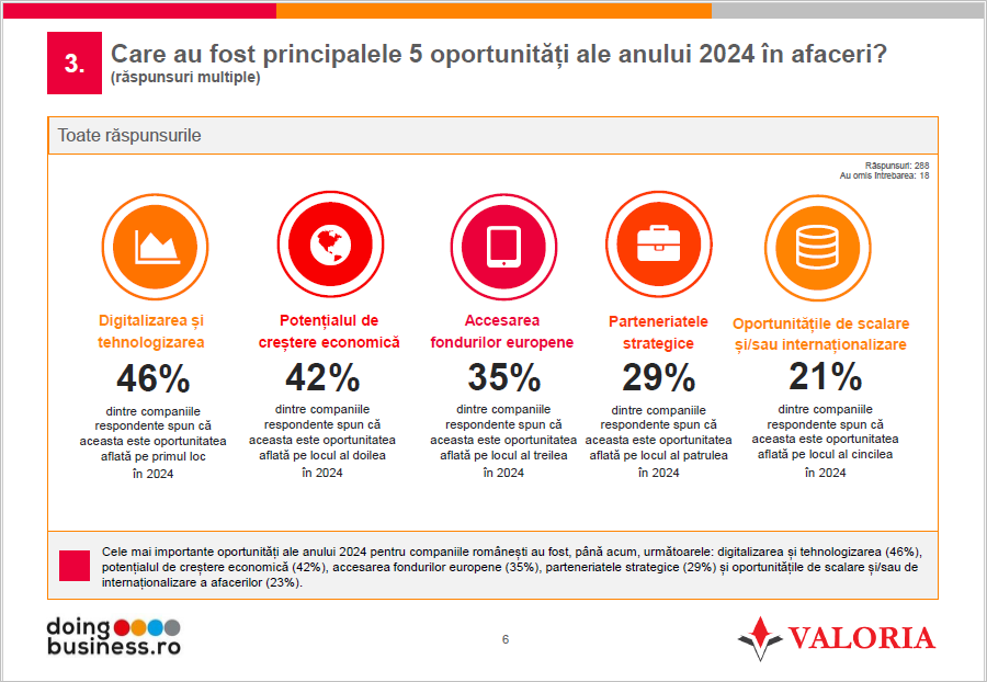 Deși priorități precum predictibilitatea legislativă și fiscală, accesul rapid la fonduri europene și digitalizarea administrației publice rămân cruciale, incertitudinile legate de contextul economic global și local continuă să influențeze prognozele de creștere ale companiilor din România.