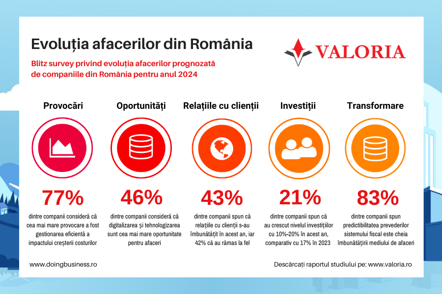 Valoria Business Solutions și Doingbusiness.ro, anunță lansarea celei de-a unsprezecea ediții a studiului „Evoluția afacerilor din România”.